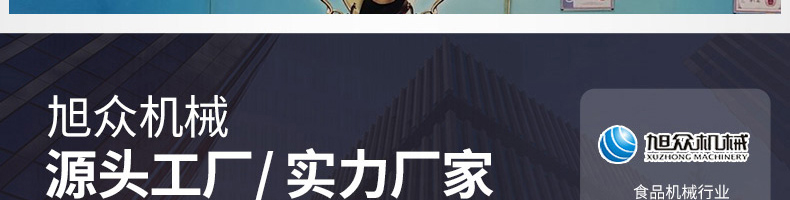 廣州旭眾食品機械有限公司是一家集科研開發(fā),生產設計,營銷服務為一體的現代化生產企業(yè)。現代化生產車間,精湛制造技術,所產機械歷經市場重重考驗,不斷贏得海內外客戶的贊譽。