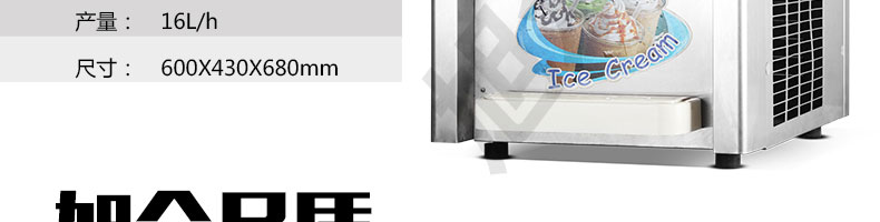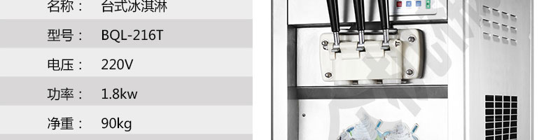 BQL-216T臺式冰淇淋機(jī),●選用國際名牌成熟制冷配套件和高效壓縮機(jī),融合旭眾精湛工藝輔以嚴(yán)格的質(zhì)量控制流程,使產(chǎn)品整體性能及品質(zhì)得以全面提升?!癫捎萌珨?shù)字電腦控制系統(tǒng),選用名牌優(yōu)質(zhì)電器元件,先進(jìn)的生產(chǎn)工藝,故障診斷,軟硬任意調(diào)制,自動修復(fù)功能,安全精確,可靠性更高?!駥I(yè)成熟制冷系統(tǒng)設(shè)計(jì),選用世界名牌大功率專用壓縮機(jī),大大縮短冰淇淋成型時間,相同時間內(nèi)冰淇淋產(chǎn)量大幅度增加,使您生意火爆時依然得心應(yīng)手,為您創(chuàng)造財(cái)富?!癜踩椒€(wěn)的機(jī)械攪拌系統(tǒng),噪音更低、振動更小,使整機(jī)運(yùn)行性能達(dá)到國際先進(jìn)水平?!翊_保進(jìn)料溫度在0°C~35°C;環(huán)境溫度5°C~40°C勻可正常使用。