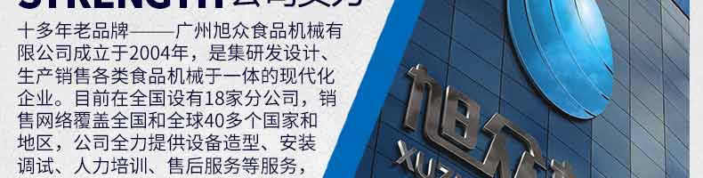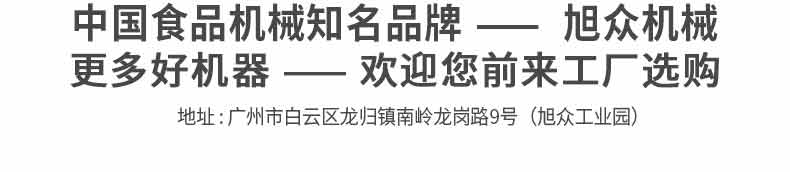廣州旭眾食品機(jī)械有限公司是一家集科研開發(fā),生產(chǎn)設(shè)計(jì),營銷服務(wù)為一體的現(xiàn)代化生產(chǎn)企業(yè)?,F(xiàn)代化生產(chǎn)車間,精湛制造技術(shù),所產(chǎn)機(jī)械歷經(jīng)市場重重考驗(yàn),不斷贏得海內(nèi)外客戶的贊譽(yù)。