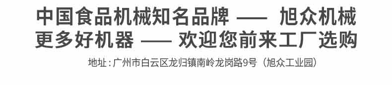 廣州旭眾食品機(jī)械有限公司是一家集科研開發(fā),生產(chǎn)設(shè)計(jì),營銷服務(wù)為一體的現(xiàn)代化生產(chǎn)企業(yè)?,F(xiàn)代化生產(chǎn)車間,精湛制造技術(shù),所產(chǎn)機(jī)械歷經(jīng)市場重重考驗(yàn),不斷贏得海內(nèi)外客戶的贊譽(yù)。