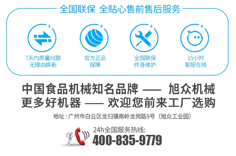廣州旭眾食品機(jī)械有限公司是一家集科研開(kāi)發(fā),生產(chǎn)設(shè)計(jì),營(yíng)銷服務(wù)為一體的現(xiàn)代化生產(chǎn)企業(yè)。現(xiàn)代化生產(chǎn)車間,精湛制造技術(shù),所產(chǎn)機(jī)械歷經(jīng)市場(chǎng)重重考驗(yàn),不斷贏得海內(nèi)外客戶的贊譽(yù)。