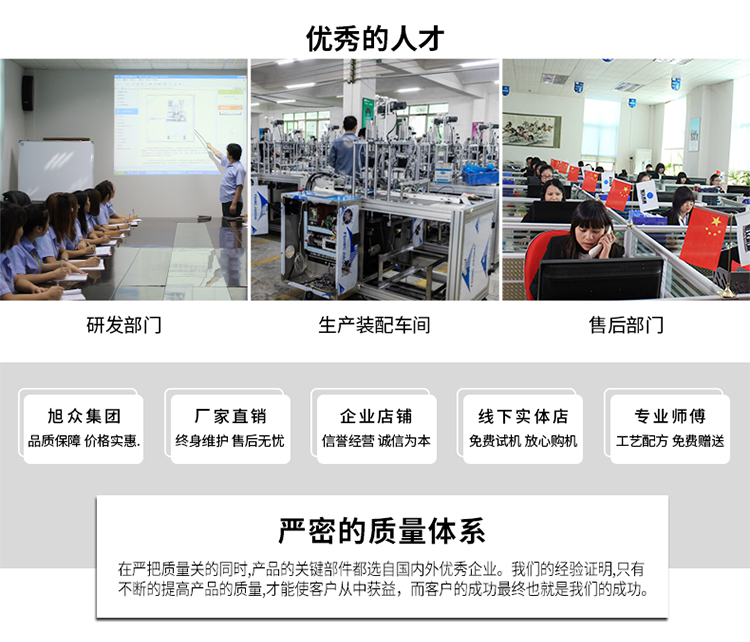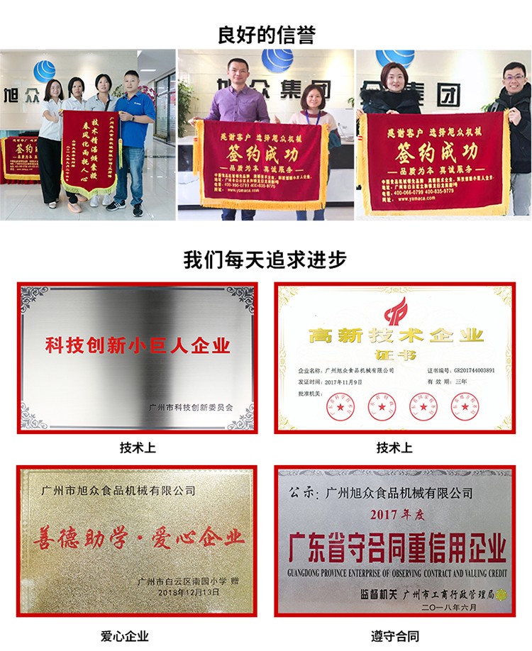 廣州旭眾食品機(jī)械有限公司是一家集科研開(kāi)發(fā),生產(chǎn)設(shè)計(jì),營(yíng)銷(xiāo)服務(wù)為一體的現(xiàn)代化生產(chǎn)企業(yè)?,F(xiàn)代化生產(chǎn)車(chē)間,精湛制造技術(shù),所產(chǎn)機(jī)械歷經(jīng)市場(chǎng)重重考驗(yàn),不斷贏得海內(nèi)外客戶的贊譽(yù)。