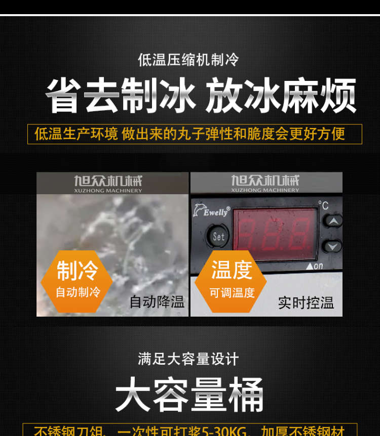 XZ-ZL-36制冷打漿機(jī),滿足大容量設(shè)計,大容量桶不銹鋼刀俎、一次性可打漿530KG,加厚不銹鋼材。