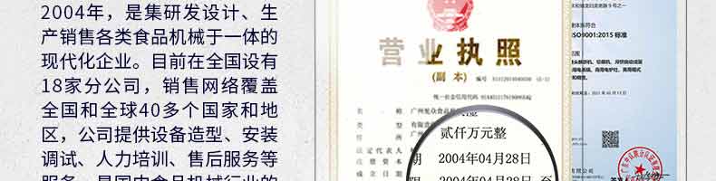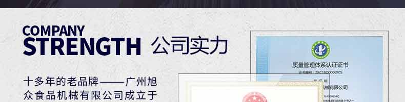 廣州旭眾食品機械有限公司是一家集科研開發(fā),生產(chǎn)設(shè)計,營銷服務(wù)為一體的現(xiàn)代化生產(chǎn)企業(yè)。現(xiàn)代化生產(chǎn)車間,精湛制造技術(shù),所產(chǎn)機械歷經(jīng)市場重重考驗,不斷贏得海內(nèi)外客戶的贊譽。