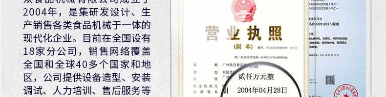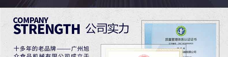 廣州旭眾食品機(jī)械有限公司是一家集科研開(kāi)發(fā),生產(chǎn)設(shè)計(jì),營(yíng)銷(xiāo)服務(wù)為一體的現(xiàn)代化生產(chǎn)企業(yè)。現(xiàn)代化生產(chǎn)車(chē)間,精湛制造技術(shù),所產(chǎn)機(jī)械歷經(jīng)市場(chǎng)重重考驗(yàn),不斷贏得海內(nèi)外客戶(hù)的贊譽(yù)。